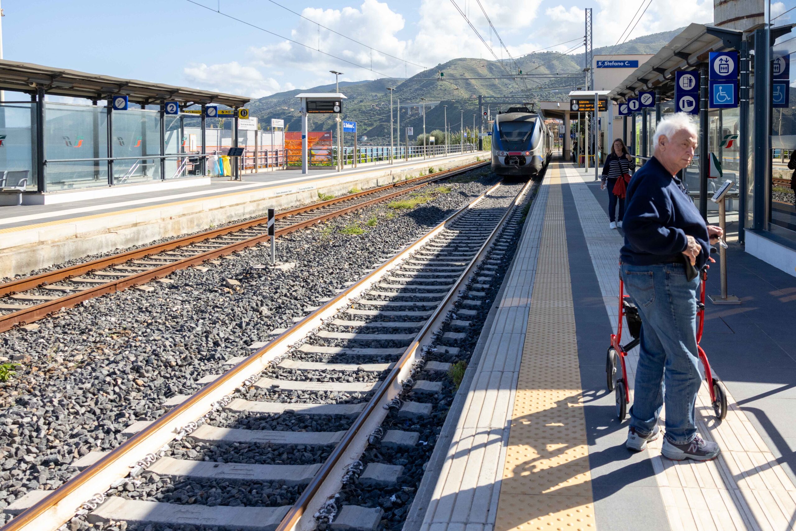 Today we took a Sicilian Train Trip. Our apartment is about 2 miles from the train station. We decided to take a taxi. The taxi was 20 euros for 4 people. This seemed reasonable. To hail a taxi in Palermo is not the same as Rome. We needed a new app. This one was appTaxi. The app said no more than 13 euros. Our driver said 20. It ended up costing the same on our way back as well. We also paid about 32 euros for 4 people to get on the morning train to Santo Stefano di Camastra. We sat on a platform full of people and waited for the train to come. Everyone then started moving to another platform. We decided to follow. As expected, our train arrived there. We boarded the train.
