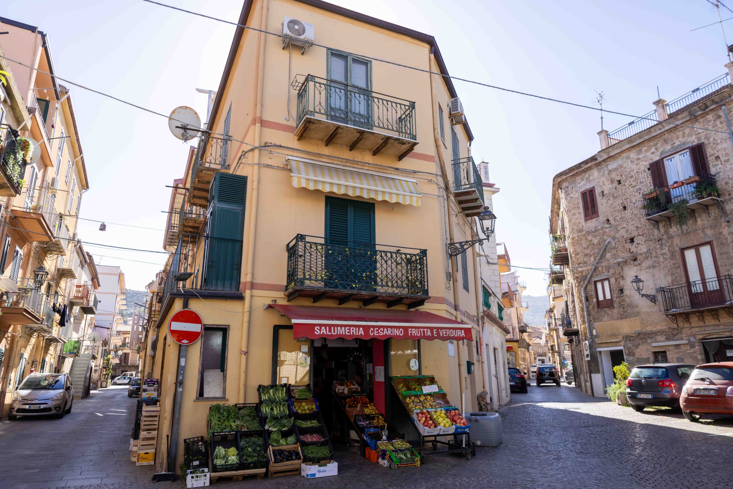 We headed over to it. But when we got there, unfortunately it was closed. We snapped a few photos of my mother-in-law by the store entrance. My wife and I bought some ceramics from another nearby vendor to remember our stay. Then we proceeded back down the mountain the way we had come. This time I walked backwards down the hill as my father-in-law walked down with his walker. We made it to the end and took a breather before walking the rest of the way to the station. We had a small espresso shot and waited for the train to Cefalu. The trip from Stefano di Camastra to Cefalu cost 28 euros for 4 people. It was three stops back the way we came.